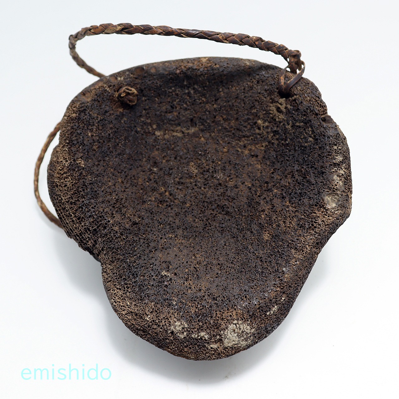 骨を使ったペンダントは何点か持っていますが、ここまで大きい骨のペンダントは珍しいです。恐らくミタンと呼ばれる牛の仲間の脚の関節部分だろうと思います。普通の牛は牧草地で草を食べてるが、ミタンは森で暮らし木の葉を食べているのだそうです。新年祭などの儀式には供物として欠かせないナガ族にとっては特別な存在で、家々の軒先にもミタンの頭蓋骨が飾られています。