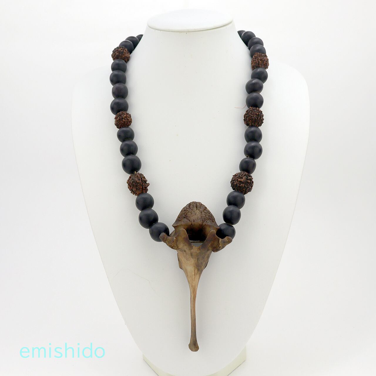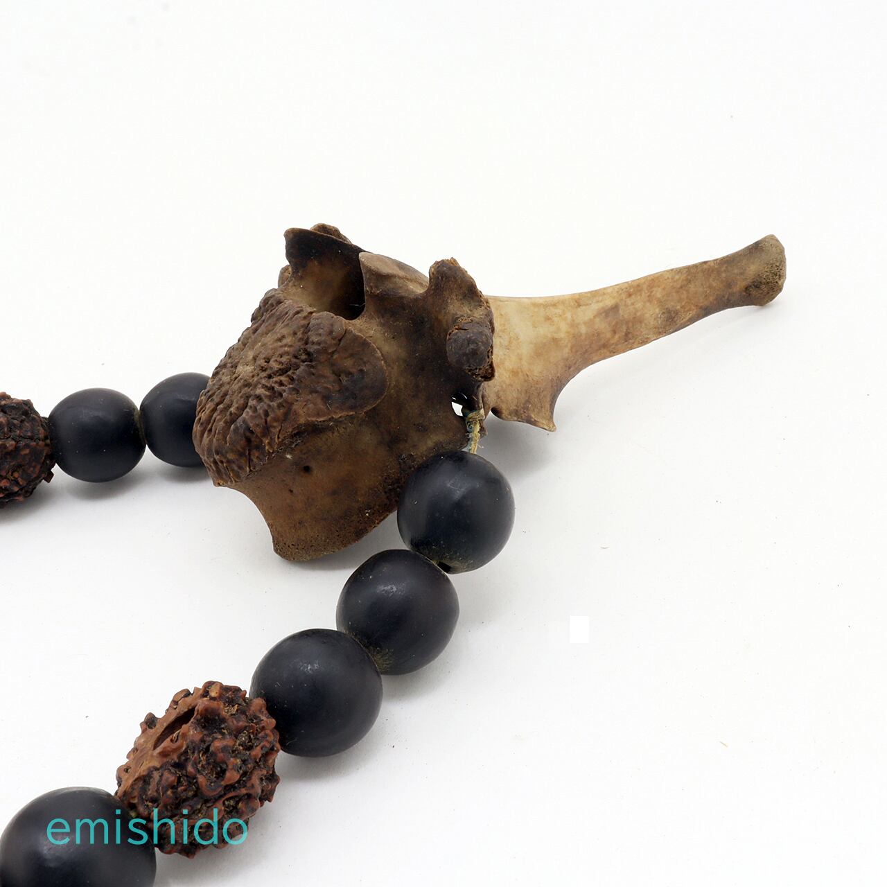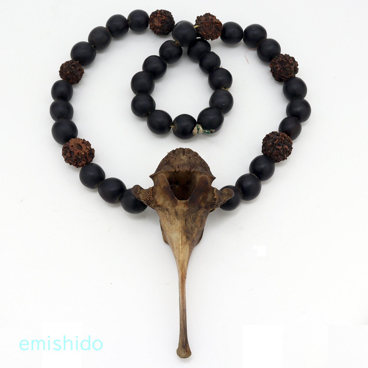 黒い「ムクロジ」の実を基本にナガ族では珍しい「ルドラクシャ(インドジュズノキ)」がアクセントに使われています。