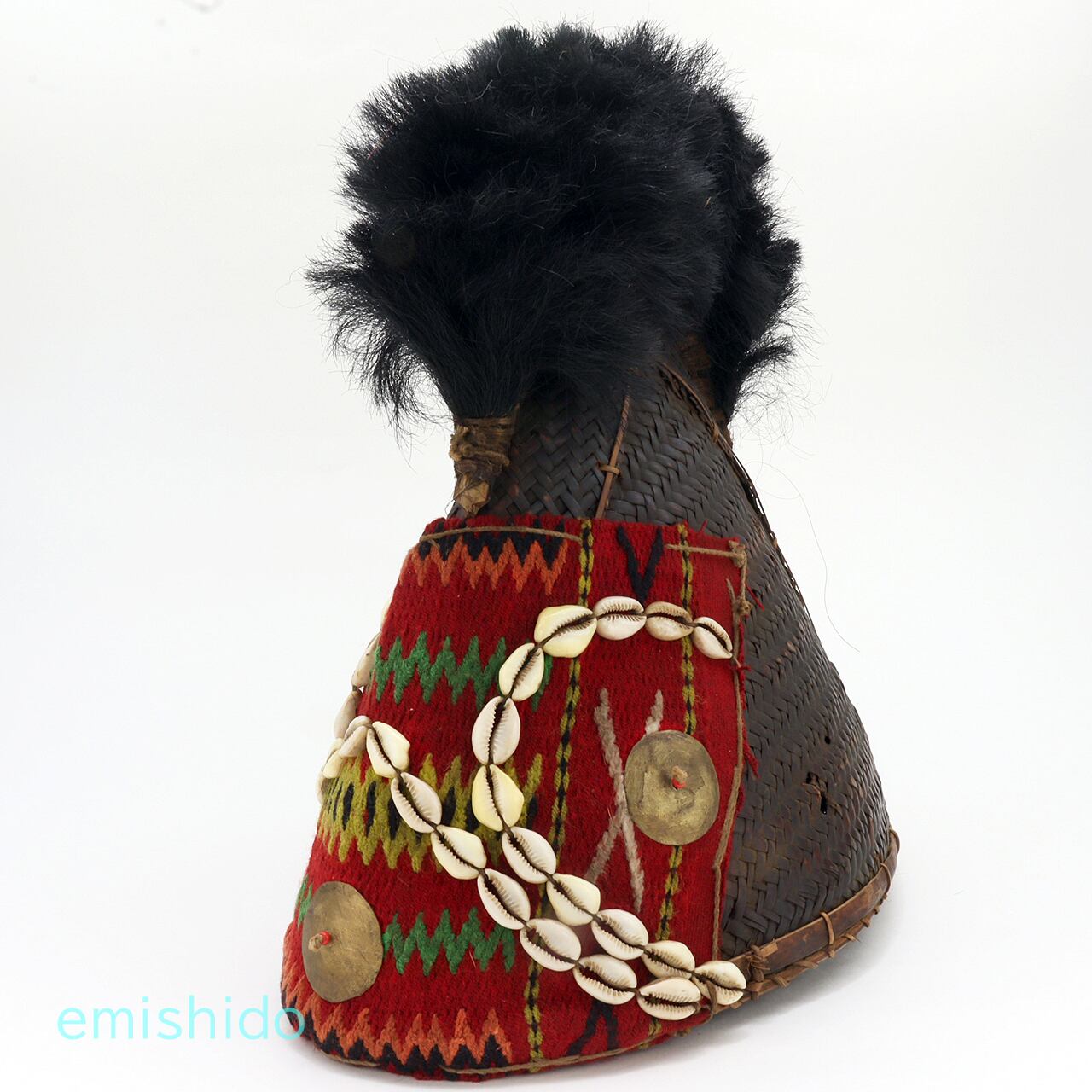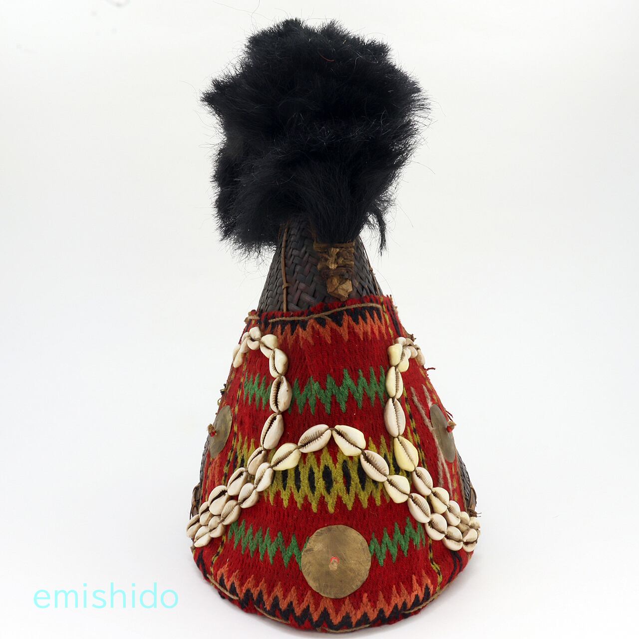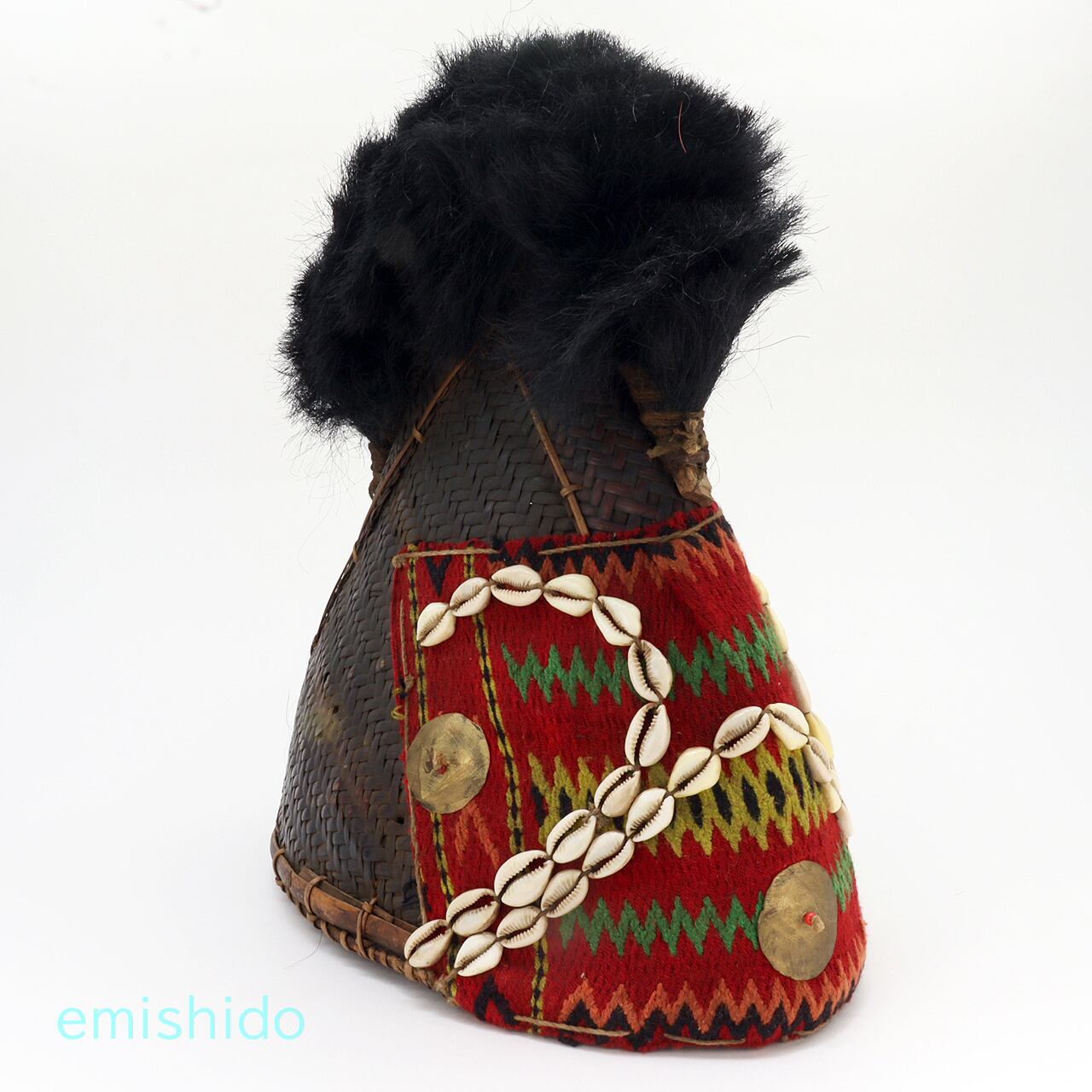ナガ族 コニャック族の伝統的織物つき帽子 0109-AG134