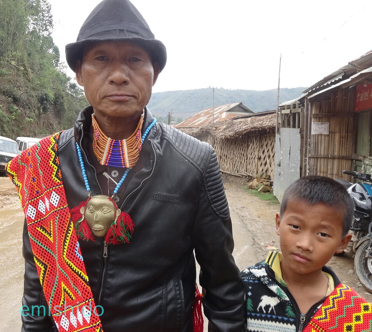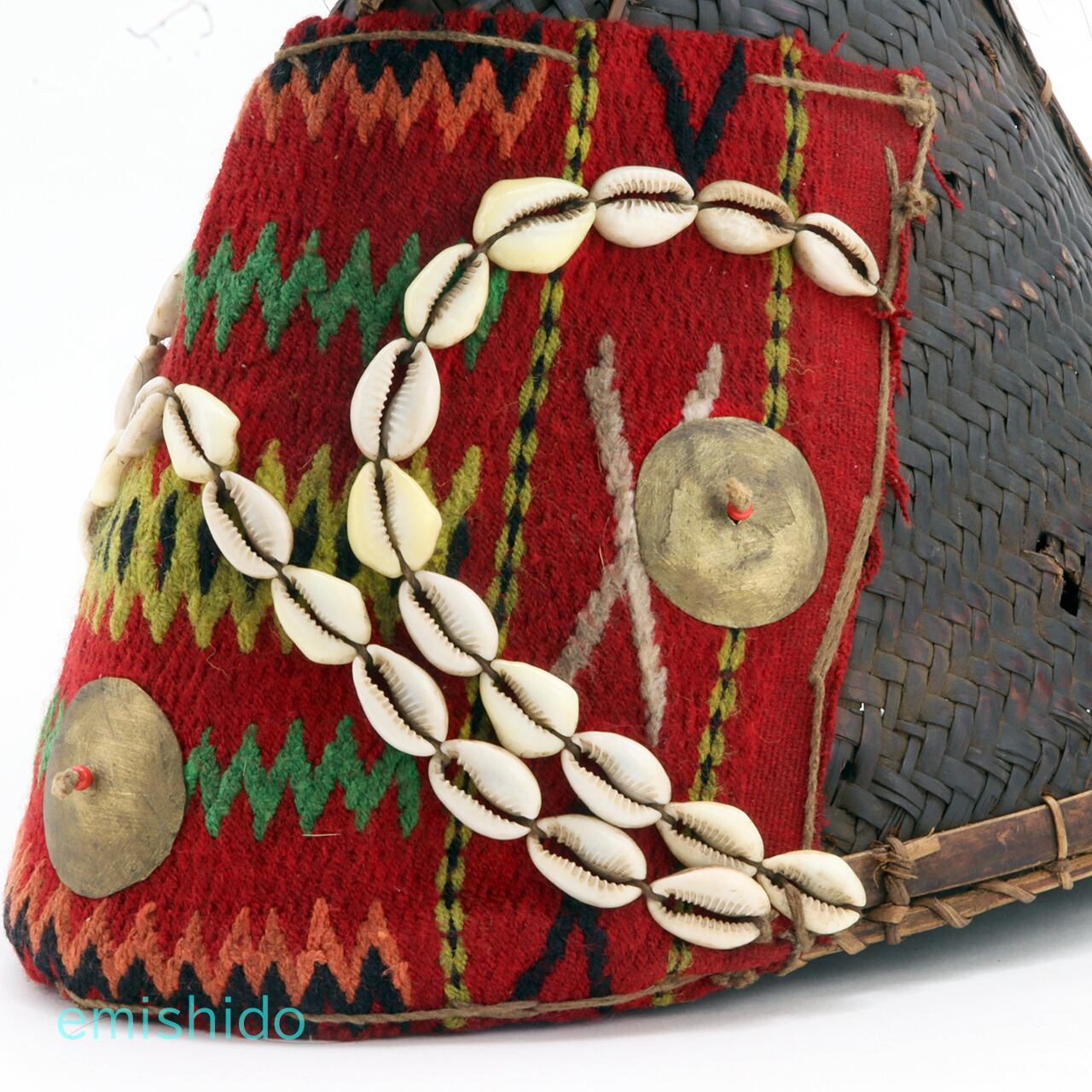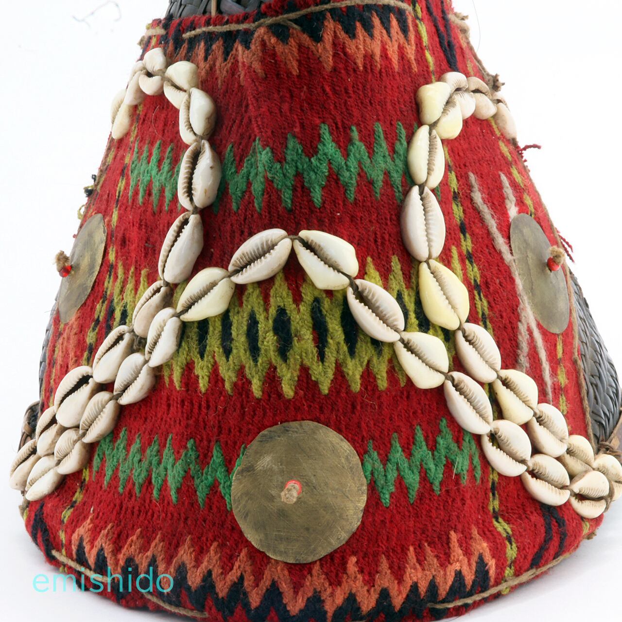 ナガ族 コニャック族の伝統的織物つき帽子 0109-AG134