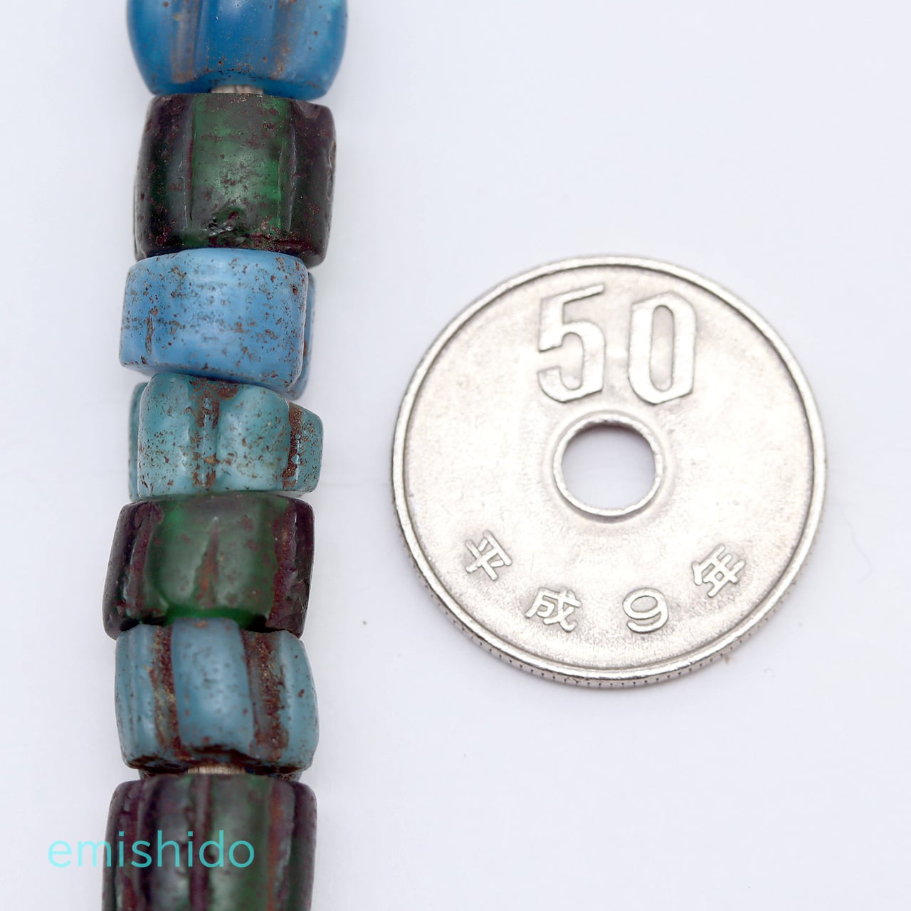 ビーズ径は約7~12mm。高さは約3~8mm。ビーズの全長は約90cm。