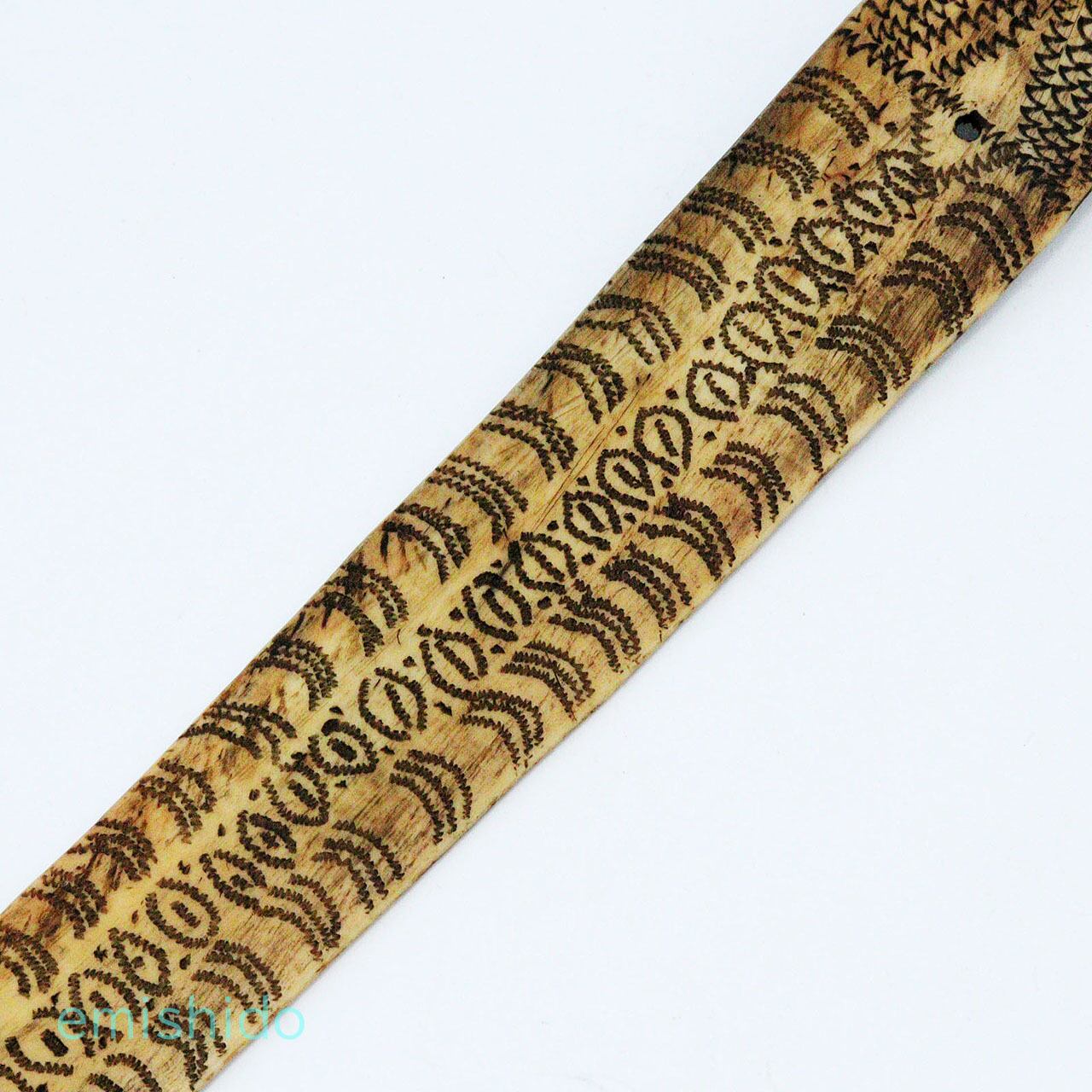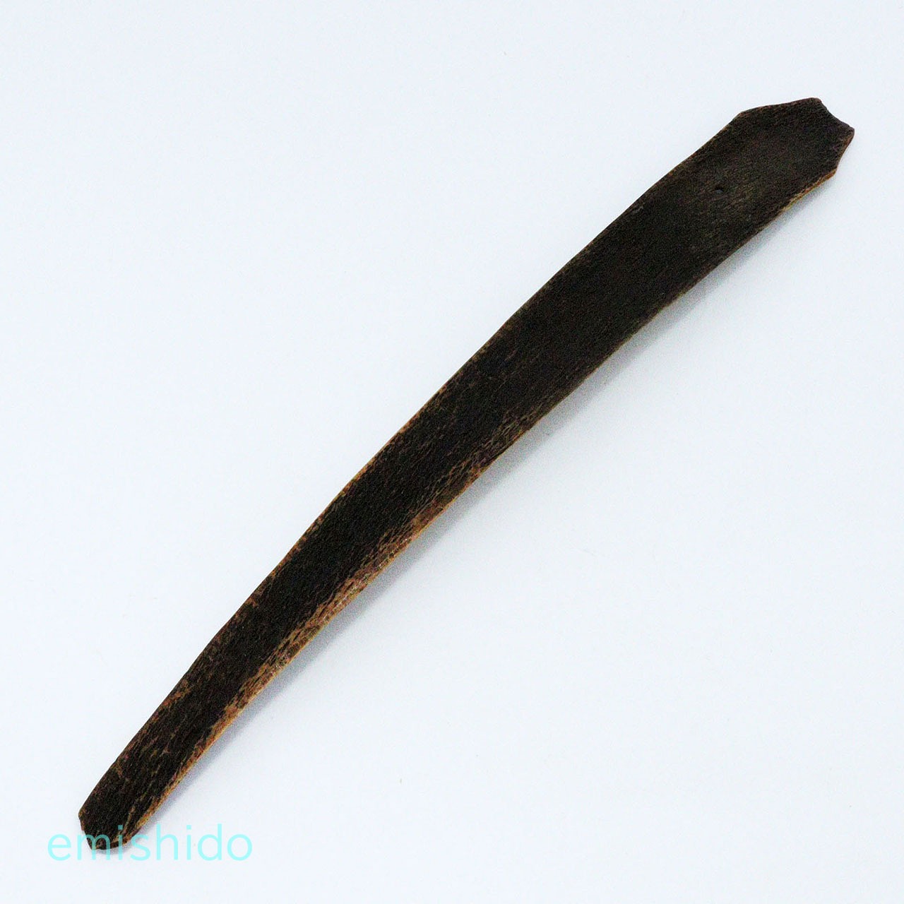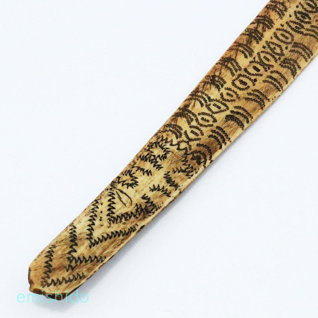 骨を薄く板状に削り、表面に細かい描線で、如何にもトライバル的な模様が描かれたヘアピンです。やったことはありませんが、骨をここまで薄く削るには大変な労力が必要であるように思います。