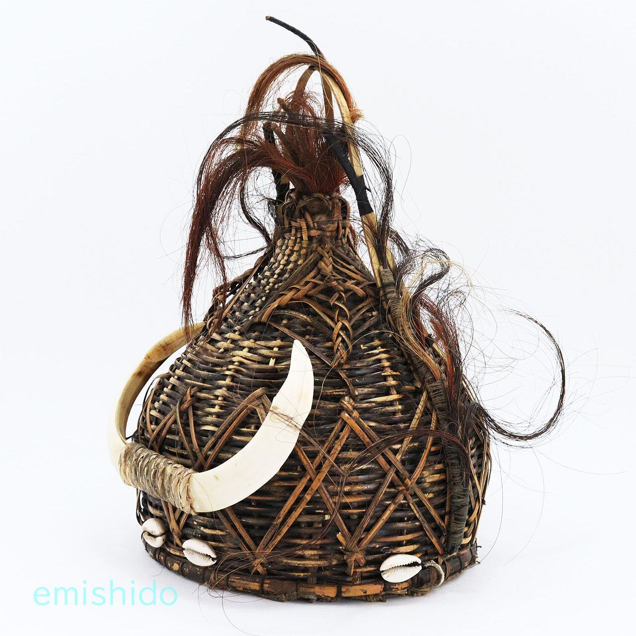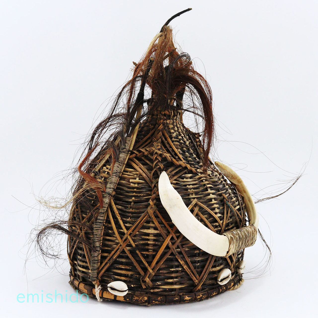 ナガ族。牙が決まったラタンの帽子 0109-NG146