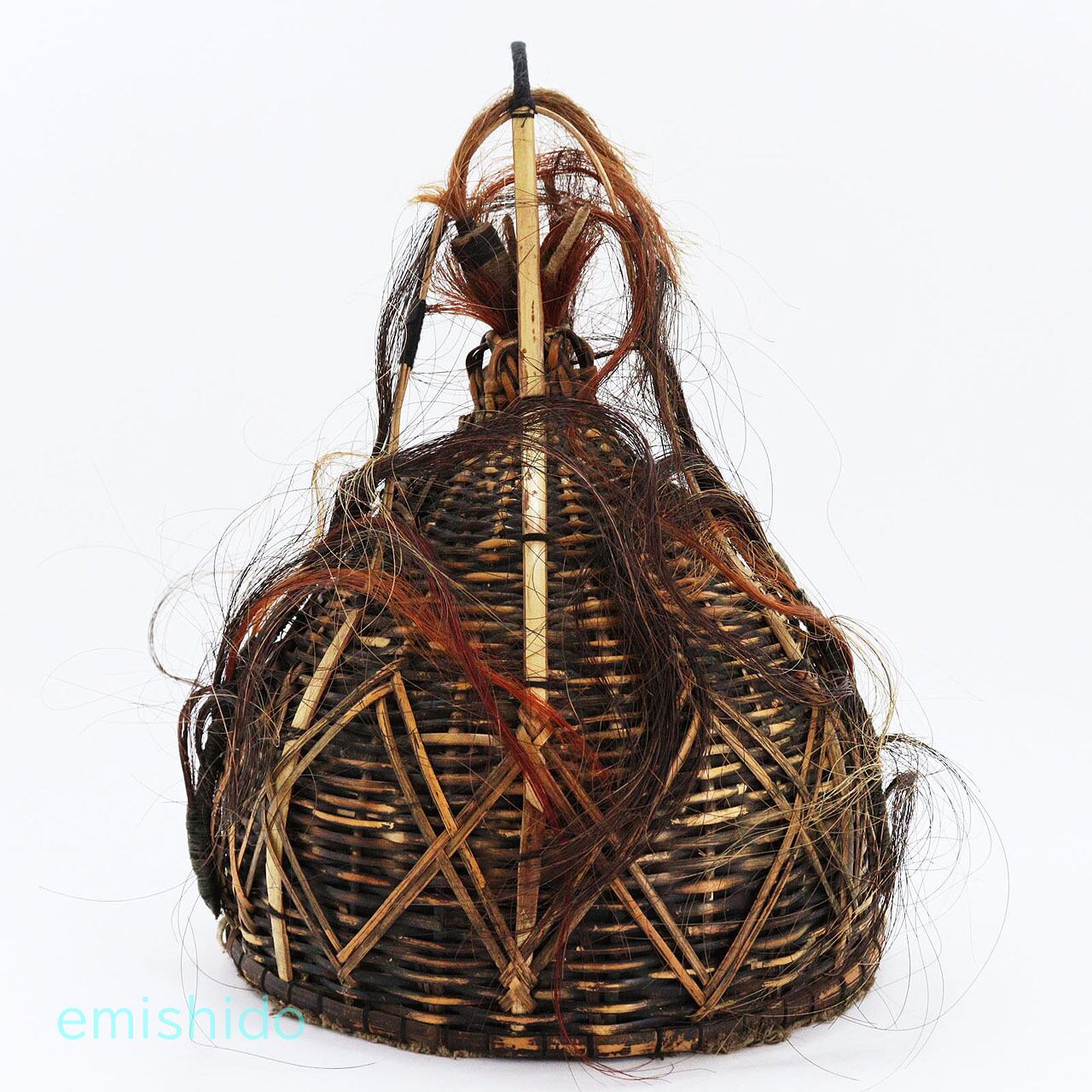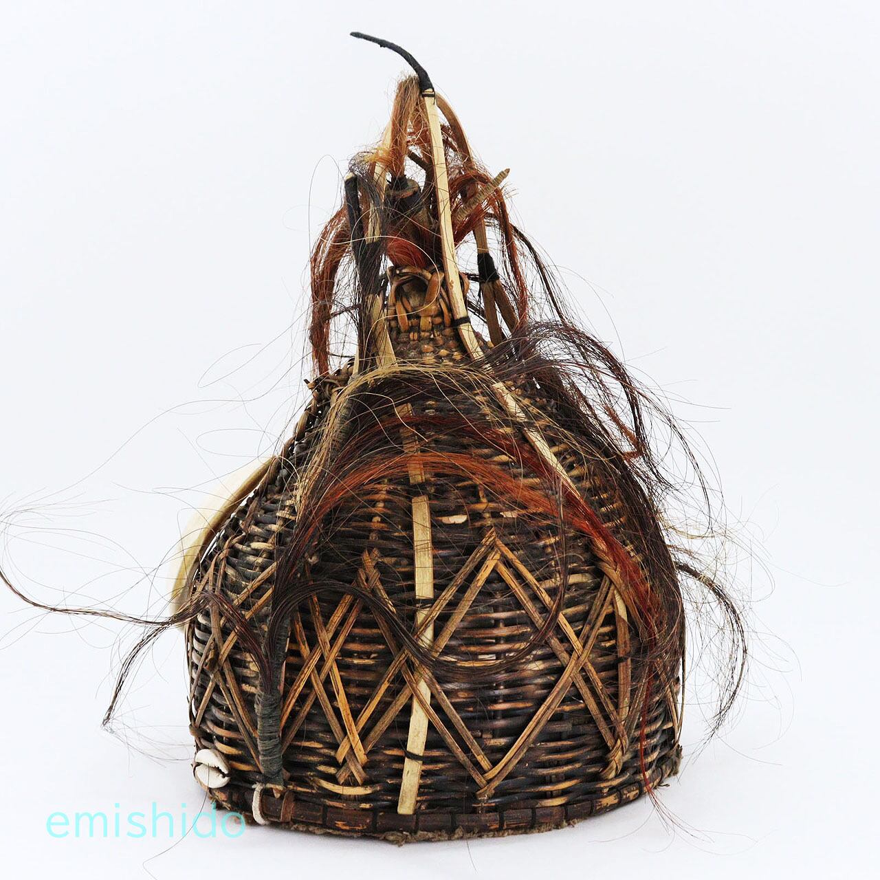 トップにはサイチョウの羽根を差し、ちょっと思いつかない飾り付け用の骨組みまで用意してあります。毛とサイチョウの羽根飾りが残っていたら、と残念です。