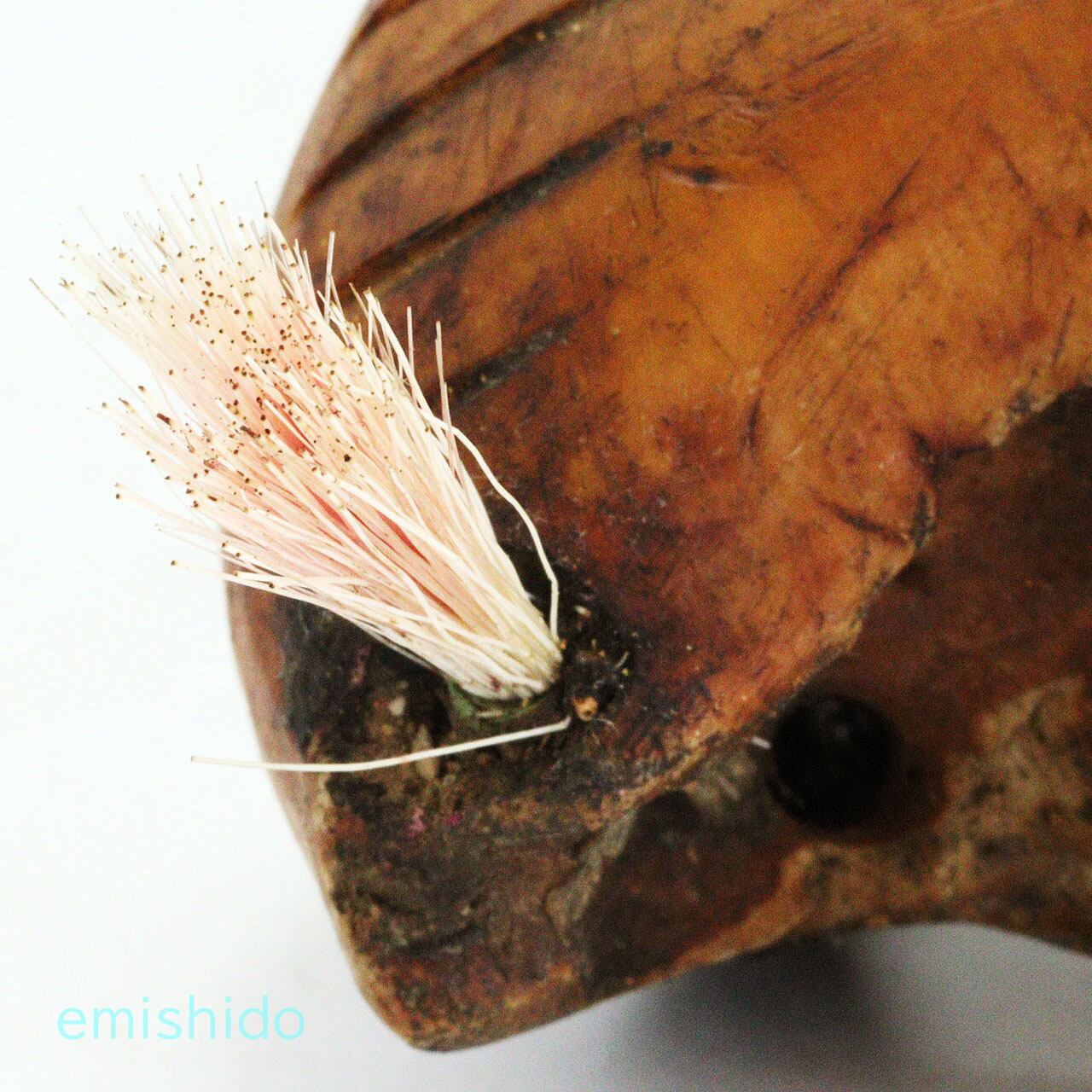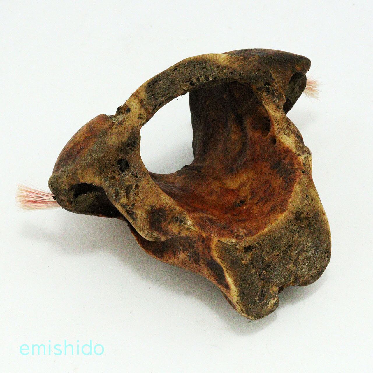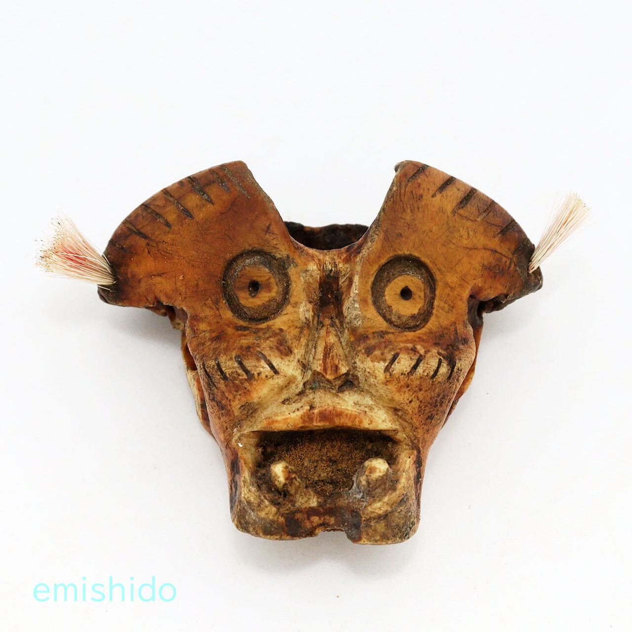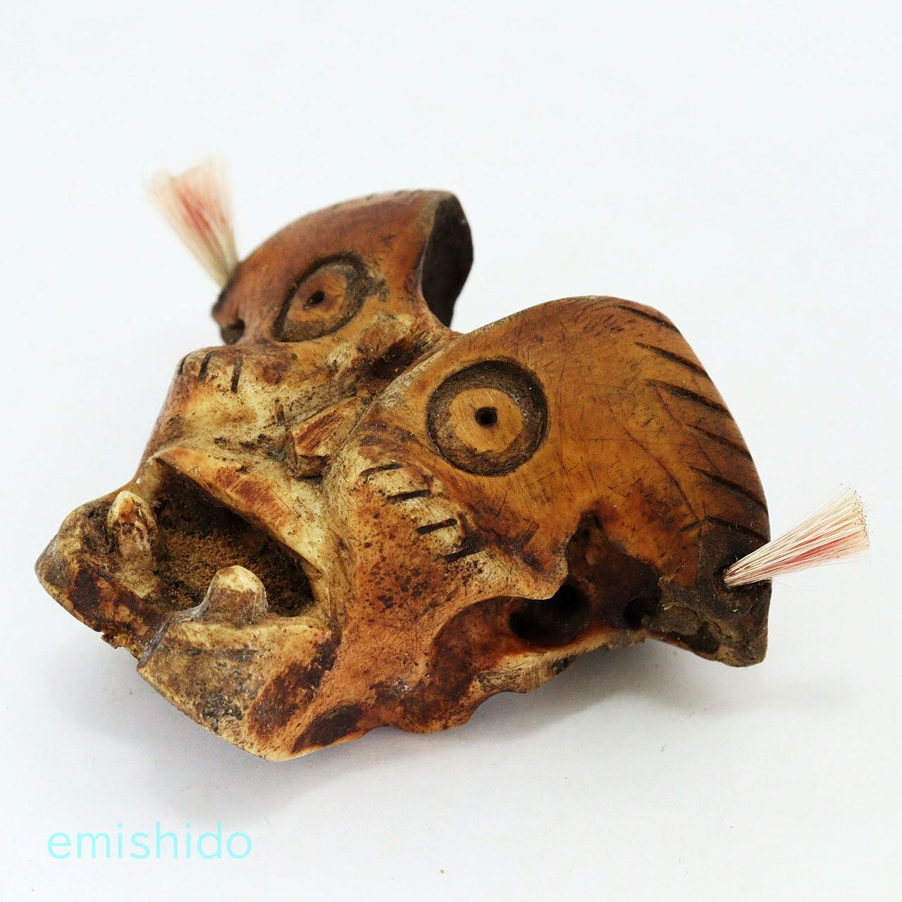 他の作品でもこの部位を使ったトップがありますが、この作者は頬骨が目立つ顔に見えたようで、眼を描きアングリ開けた口を彫っています。